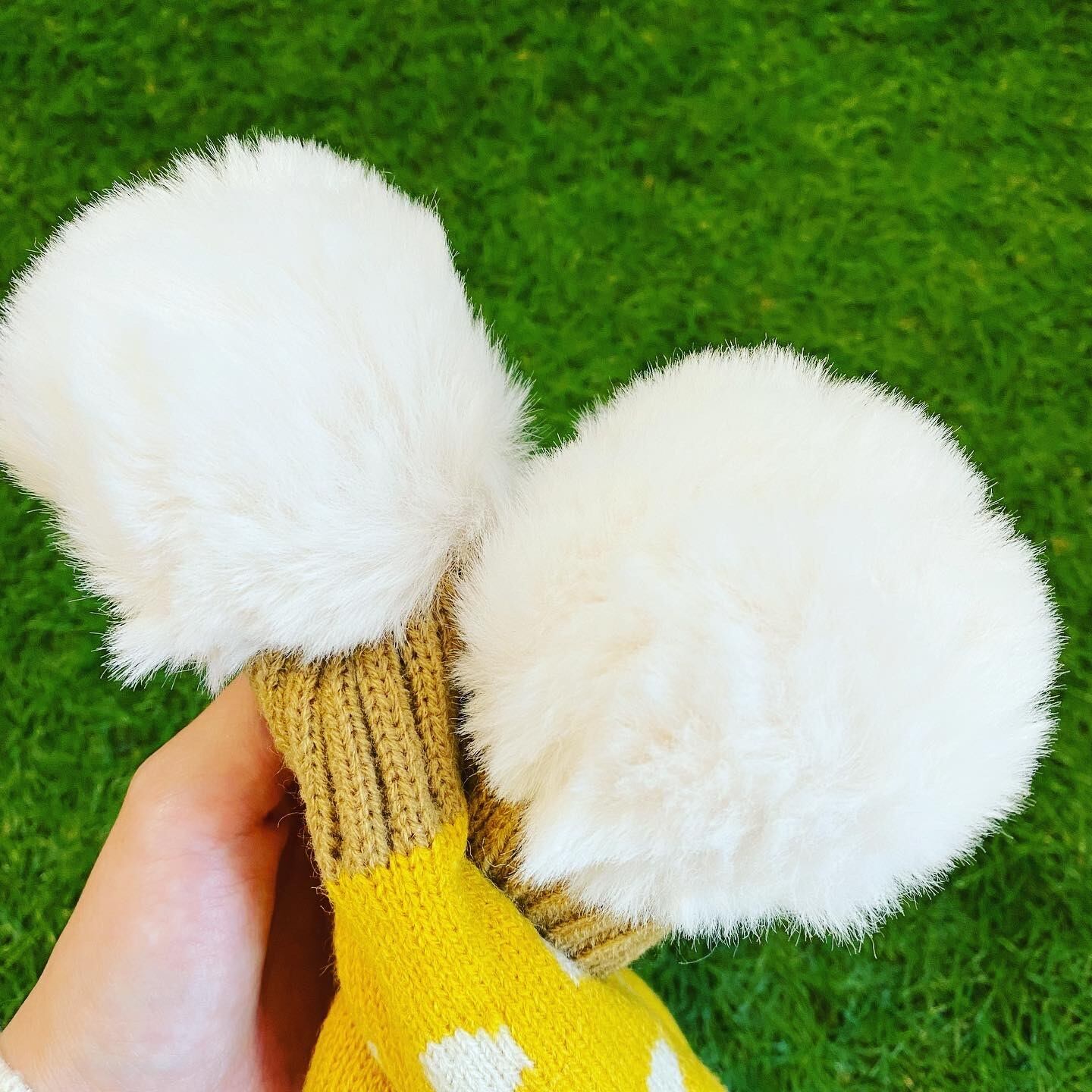 穴にボンボンを通すだけでつけれちゃう楽ちんマフラー。手触りが良くチクチクしません。ボンボンもふわふわです。
