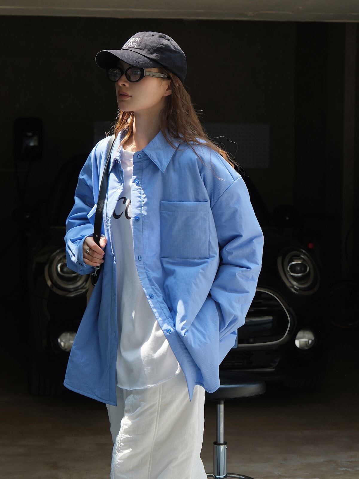 中綿入りブルーシャツ